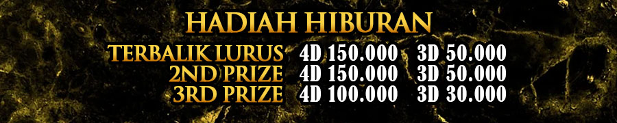 - Hadiah prize 2 : 4D = Rp. 150.000,- / 3D = Rp. 50.000,-